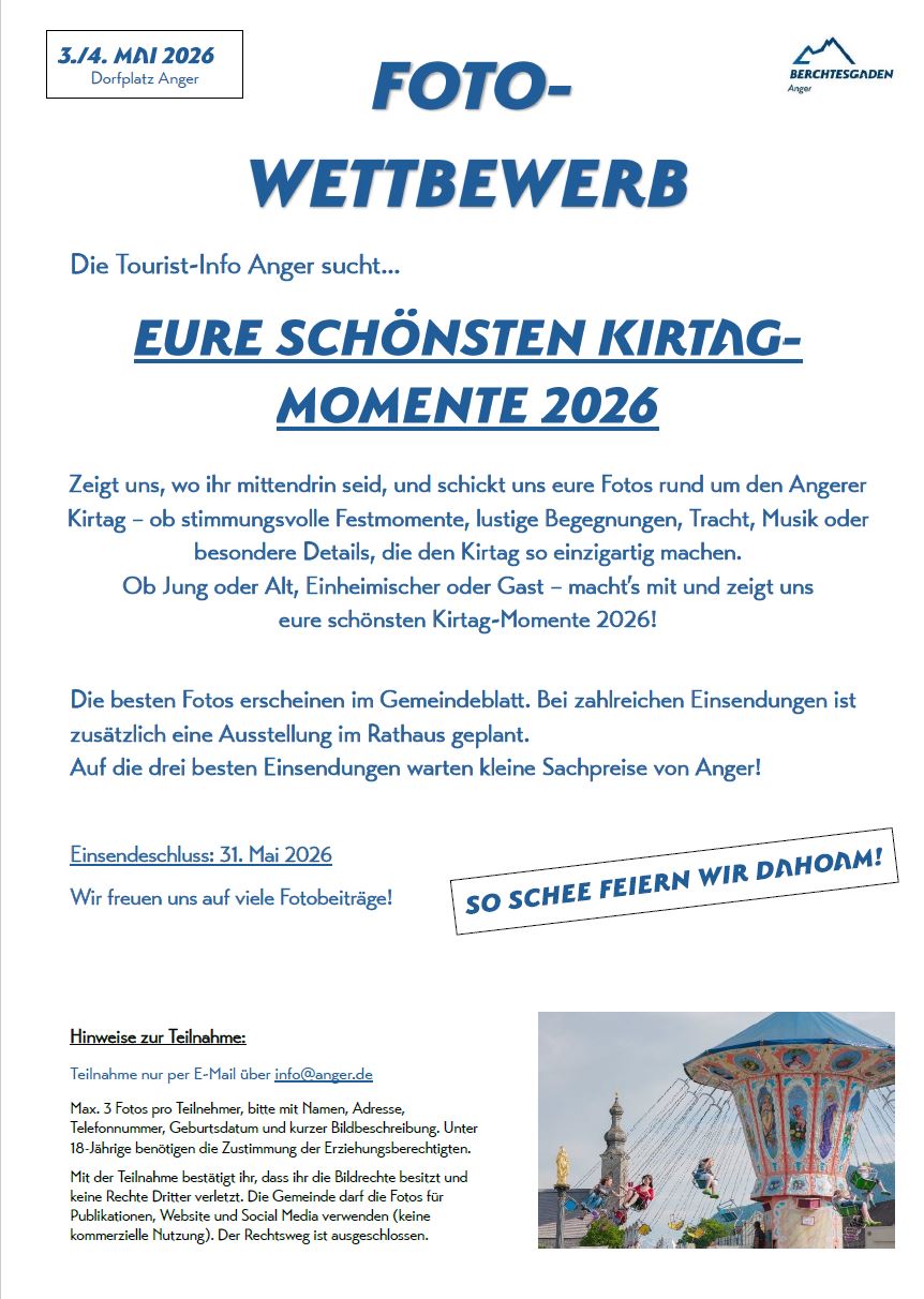 Zeigt uns, wo ihr mittendrin seid und schickt uns eure Fotos rund um den Angerer Kirtag – ob stimmungsvolle Festmomente, lustige Begegnungen, Tracht, Musik oder besondere Details, die den Kirtag so einzigartig machen.