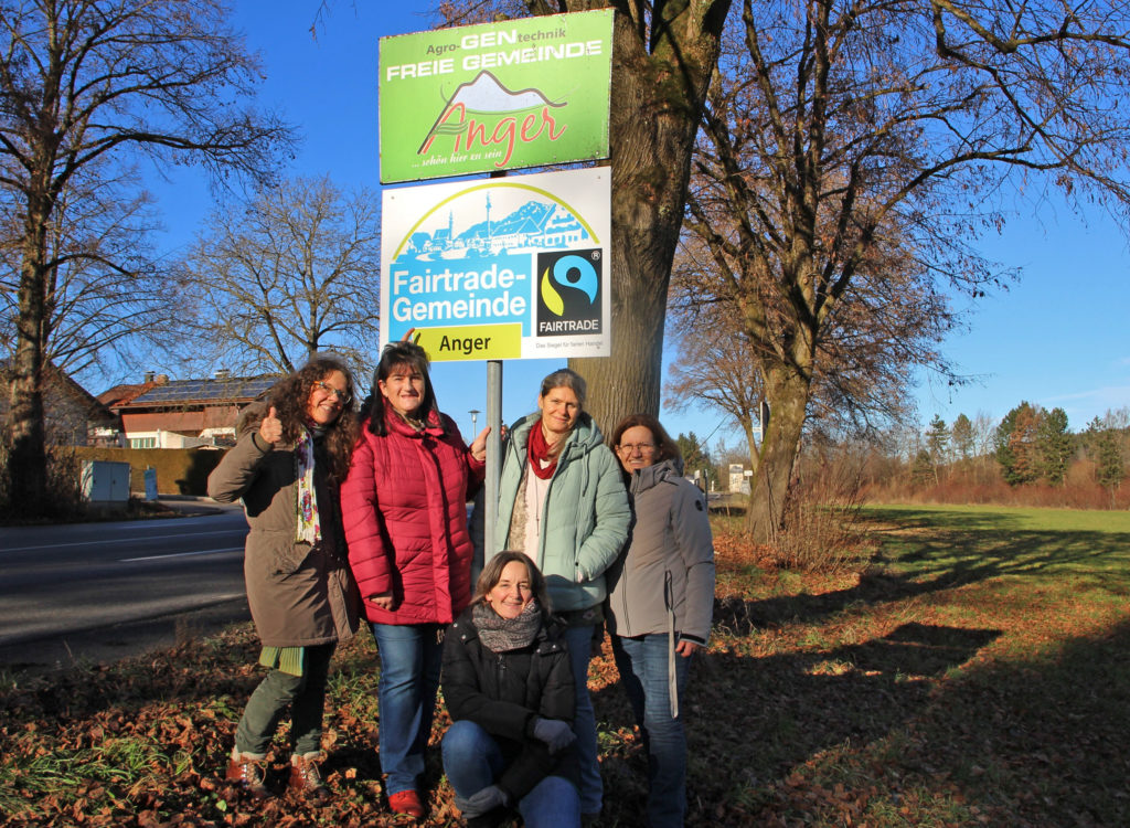 Anger – Sicherlich hat schon der eine oder andere Autofahrer auf der Staatsstraße 2104 an den Ortseingängen von Anger und Aufham am Ende der Adventszeit ein neues Schild entdeckt: „Fairtrade-Gemeinde-Anger“ ist die Aufschrift, zudem sind die Silhouette des Angerer Dorfplatzes und das blau-schwarz-grün gehaltene Fairtrade-Logo zu sehen.